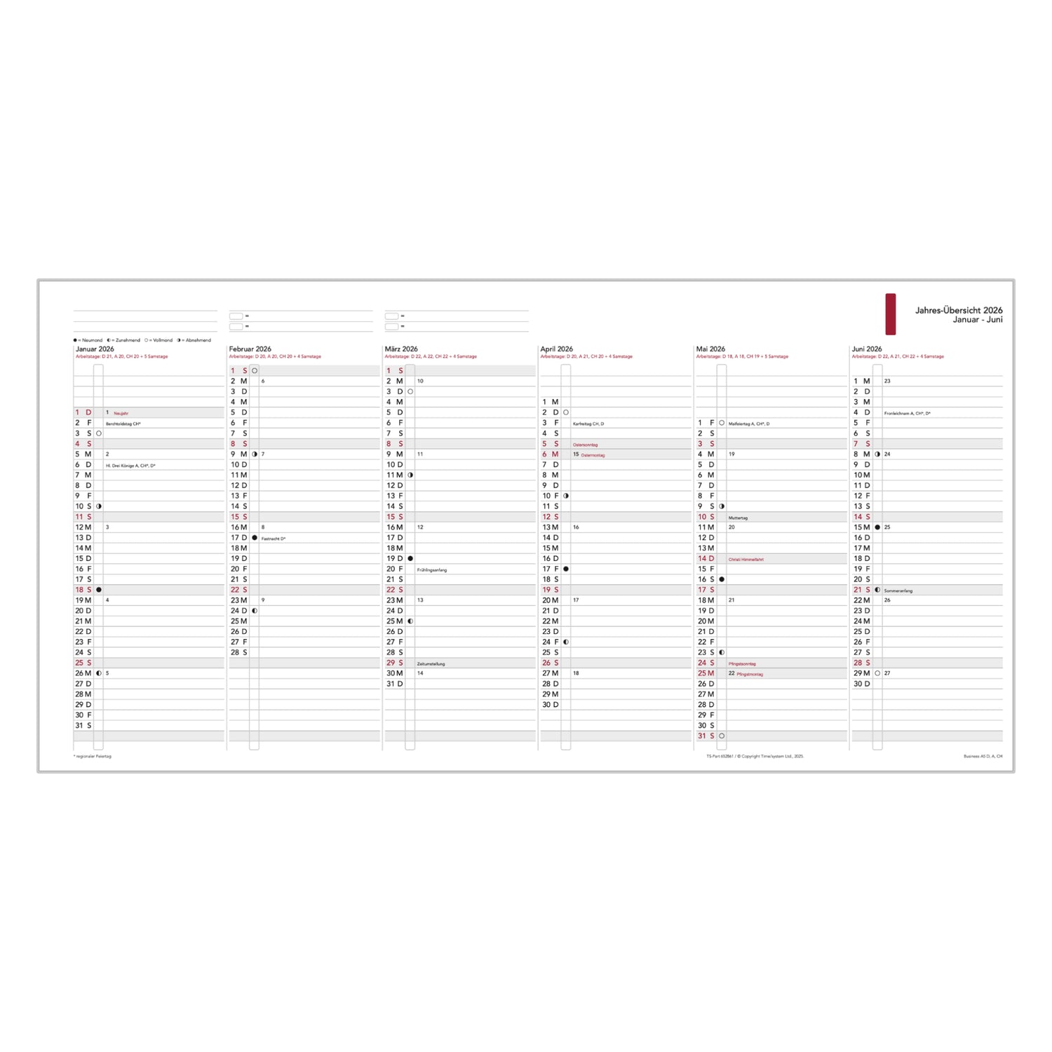Business A5 Jahresübersicht 2026